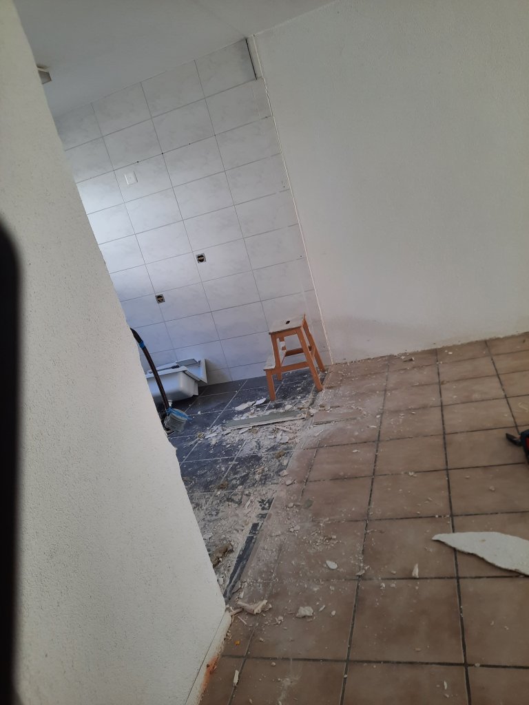 Erste april woche: wände wurden zugemauert und verputz. Wand stück wurde rausgerissen und der boden wurde gelegt.